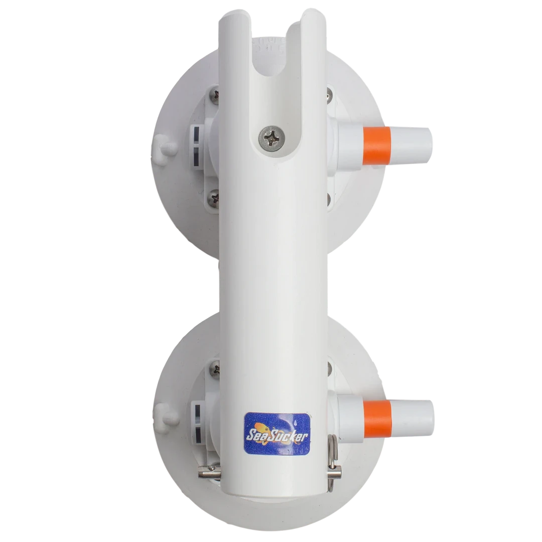 Like all SeaSucker products, the Heavy Duty Rod Holder uses to power of the SeaSucker vacuum mount to make a rock-solid connection with your boat. With two of our 120lb pull-strength rated 4.5” SeaSuckers, this one is even stronger. Like our excellent Pro Series rod holders, this unit has a removable pin in the bottom of the precision-machined PVC rod tube: take the pin out to accommodate long-butt spinning rods or leave it in to handle conventional rods with gimbaled rod butts.Â