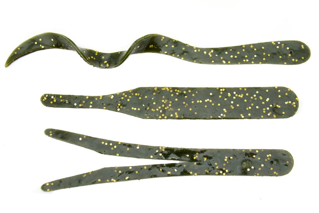 Exclusively available at White Water Outfitters. These limited edition sandeel green jig strips are a great color that has been proven to work very well when bass are feeding on sandeels. Tip these on your favorite sandeel colored bucktail, such as the S&S Game Over series, and you’ve got a great match for imitating sandeels! Available in the classic 5-1/4″ “Skinny Tail”, 5″ Split Tail, and 5-1/2″ Eel Tail shapes!
