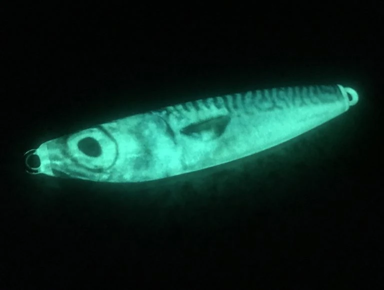 One of the hottest new jigs to hit our market in a while. Deadly on a variety of species both inshore and offshore. Each jig is an ultra realistic mackerel that also glows bight enough to light a small room. Comes standard with a heavy duty hook rigged on the tail of the lure.Â