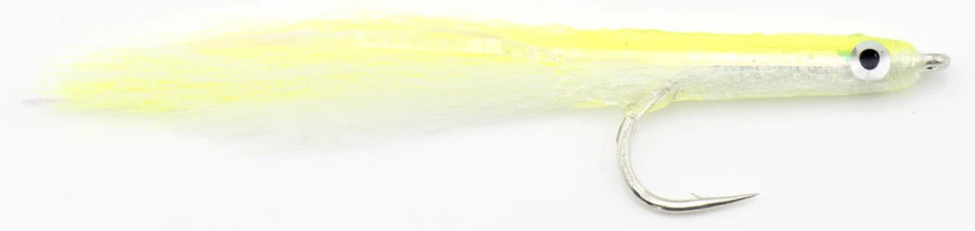Tied by Mike “LI Flies” Ozkaya, right here on Long Island, NY. These surf candy flies are tied with synthetic hair, which adds to their durability and flash. This is a classic pattern for albies, bonito, striped bass, and bluefish. Really, any fish that feeds on small, slim baitfish like bay anchovies, spearing, and glass minnows will have a go at these. These flies are tied on a strong Mustad C70SD hook. They also work great as a teaser for surfcasting applications when fished ahead of a plug.Â
