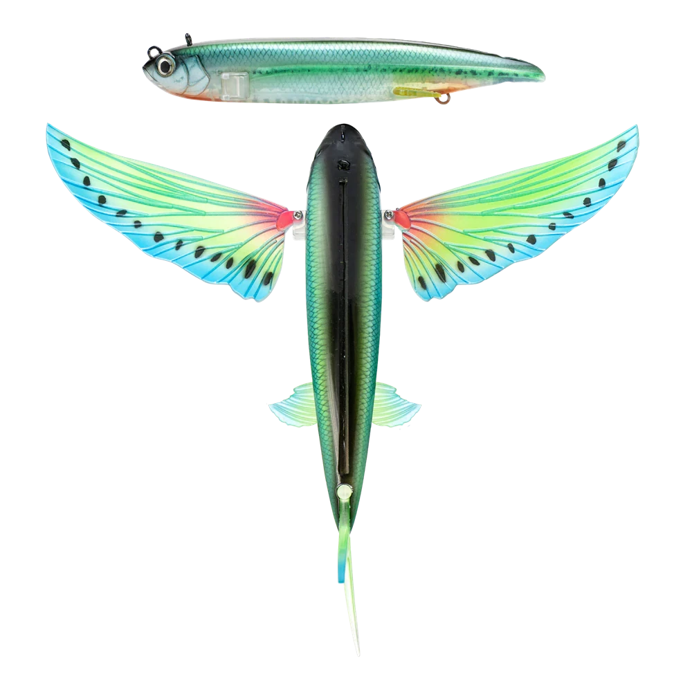 The unique folding wing design allows the wings to fold back when cast for extra distance or when fighting big Tuna and Marlin for reduced drag through the water. The wings, tail fin and side fins can all be changed or replaced with Nomad Design Wing Sets to create your own ultimate flying fish colour scheme.
