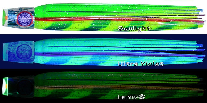 Though Pakula Sprockets can be run in any position they are at their best as a long rigger lure, particularly in the our Green Lumo colours have accounted for a great many First Marlin captures, Tournament Wins and the largest fish of the season twice in Cairns. If you are only ever going to take one piece of advice from us then let it be “Run the Lumo Sprocket on the long rigger, and leave it there!” Many of the successes on Pakula Lures are with this lure in this position. It may not catch fish for a while, but when it starts working nothing else will come close. Its tight swimming action works in all conditions at any trolling speed. It is totally irresistible, especially now that the lure comes with the updated Lumo Skirts. Don’t leave home without a Lumo Sprocket! In fact you’ll more than likely need spares. Anglers have been known to troll a full spread of Lumo Sprockets!