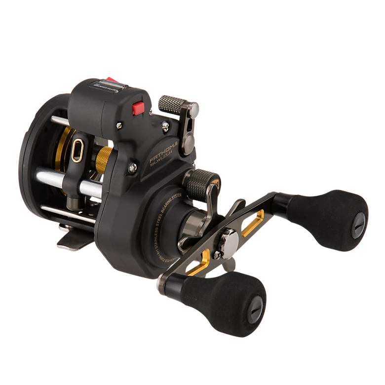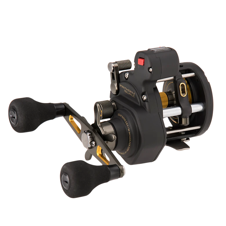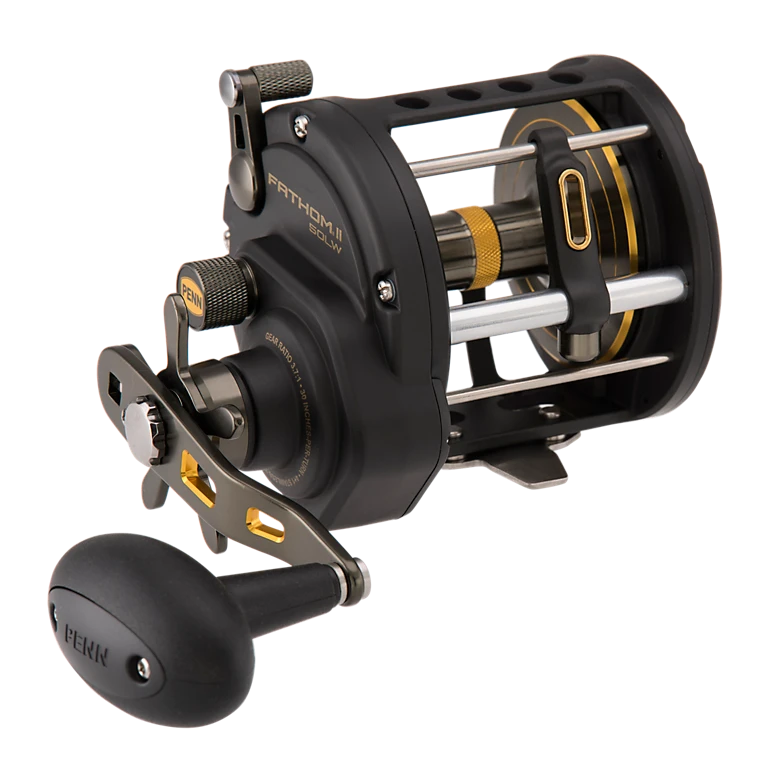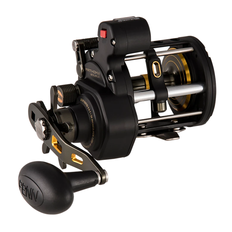 The PENN Fathom II Level Wind’s heavy duty construction and powerful gears make it a true workhorse and favorite of charter boat Captains. It is designed to handle extreme abuse day-in and day-out. Whether you are bottom-fishing or casting live bait, the Fathom II will stand up to the hardest fishing conditions. A Full Metal Body keeps precise gear alignment while the Fast Gear Access Sideplate allows for easy maintenance. The Fathom II also houses our powerful HT-100 drag system to stop any fish that bites. Available in standard, line counter and left hand models
