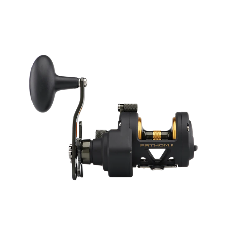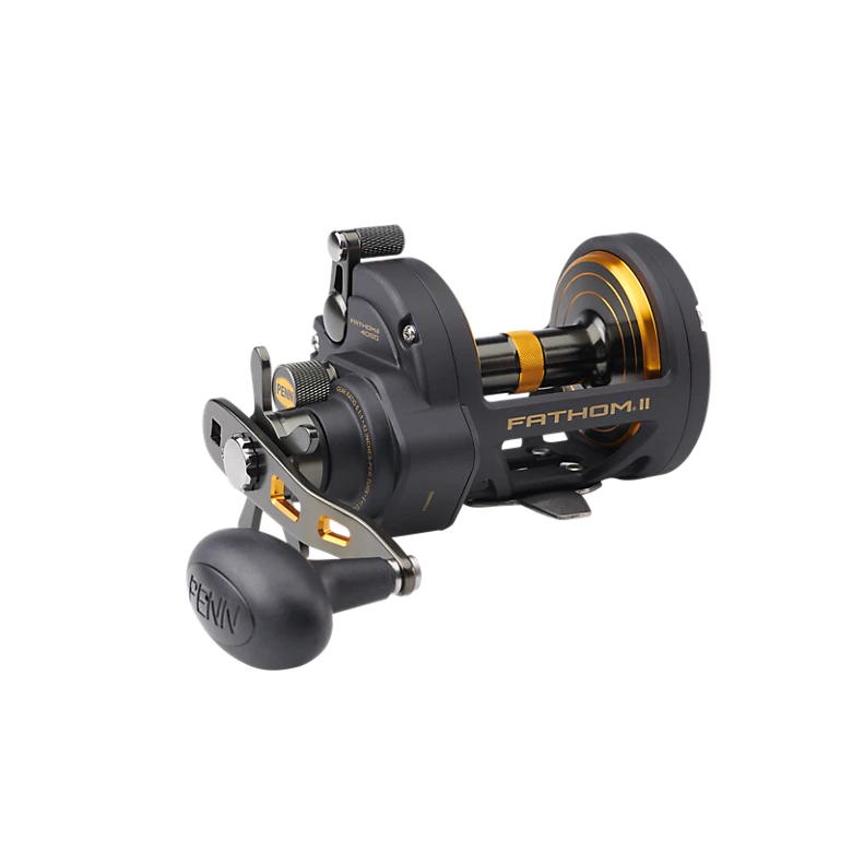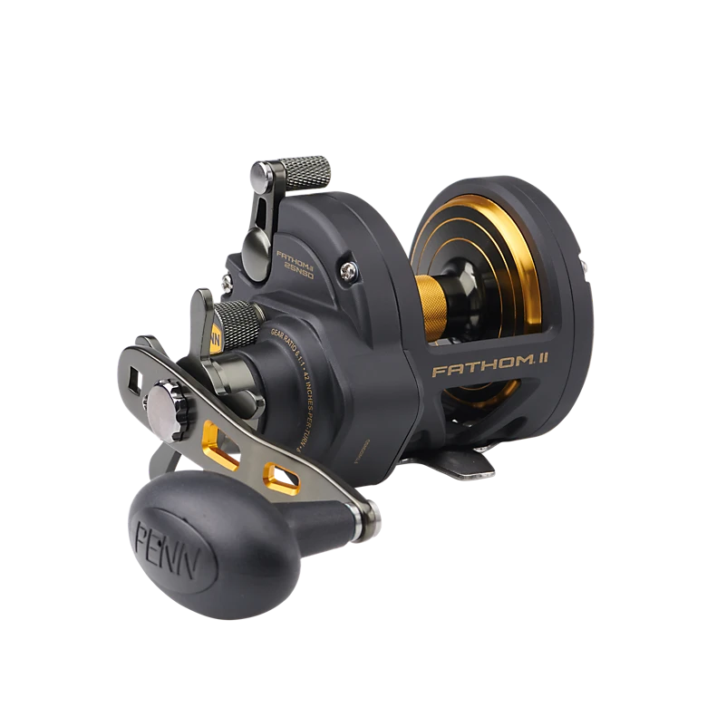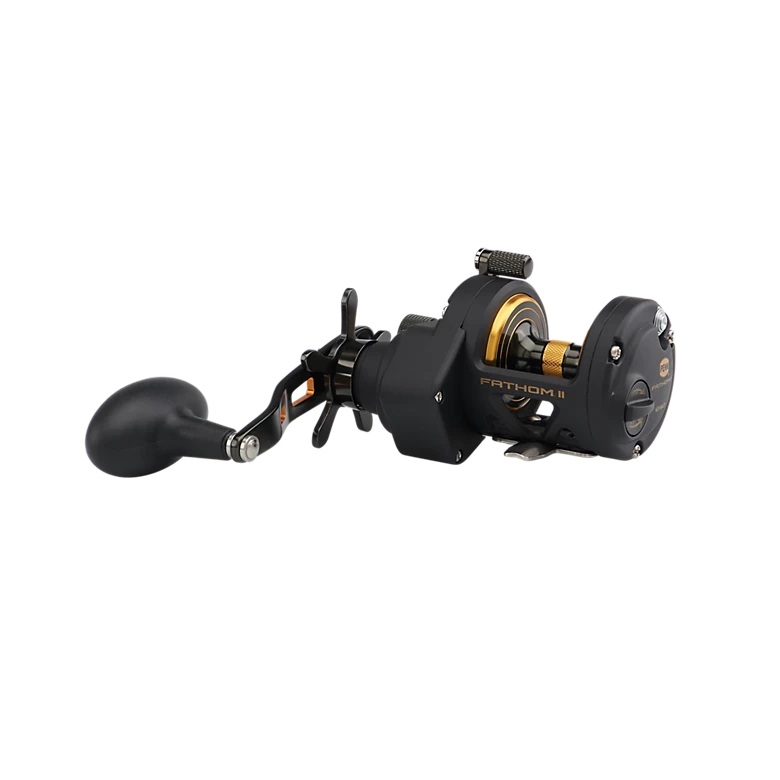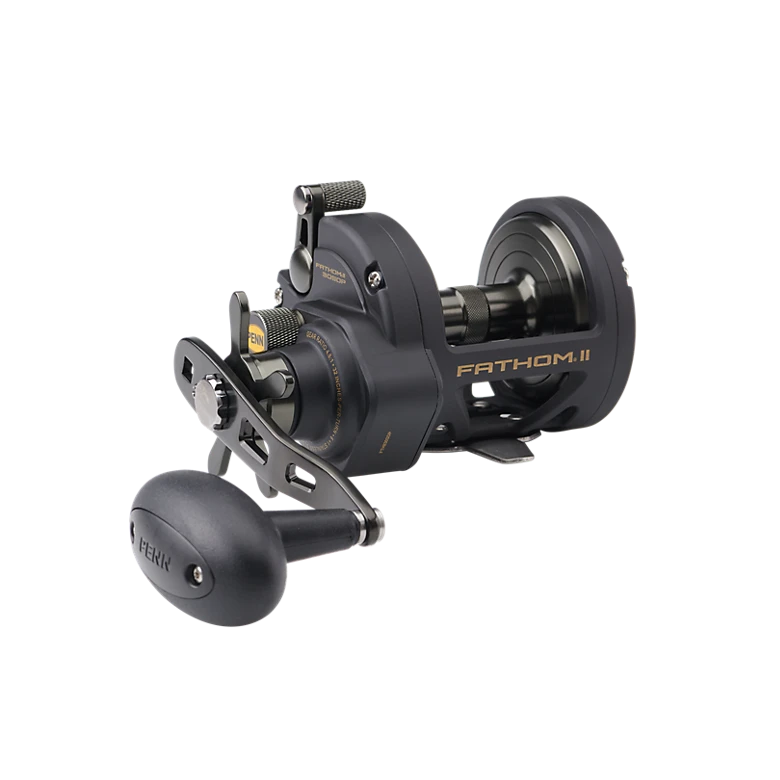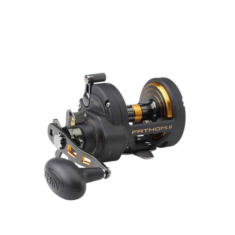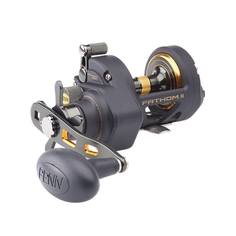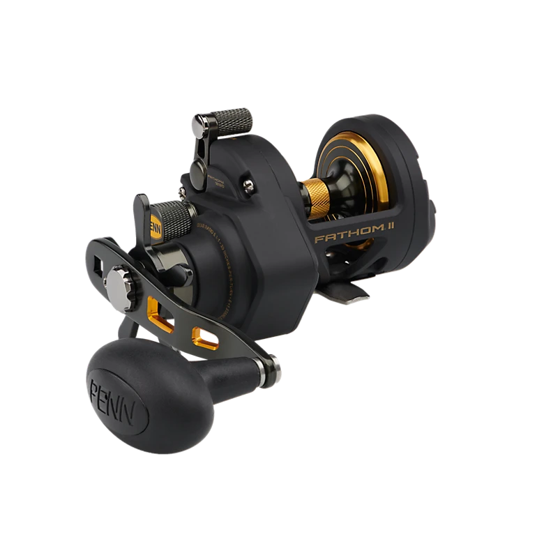 The second generation PENN® Fathom® II star drag reel is built with a rigid metal frame and sideplates, now with added features to make it more angler friendly than ever. Featuring our fast gear access sideplate, any angler can service their gears and HT-100™ drag system quickly and efficiently. The PENN live spindle design offers long, effortless casts, while the power gear ratios (select models only) give ultimate torque for winching up deep fish. Magnetic casting brake available on 12 and 15 sizes only.