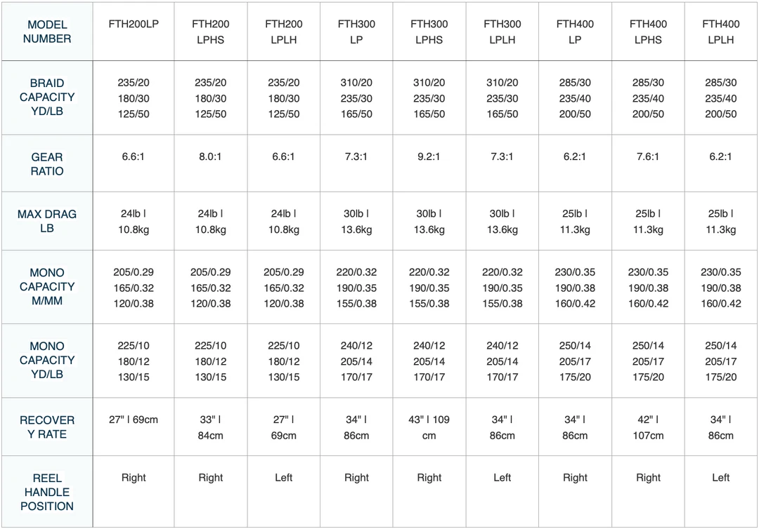 The PENN® Fathom low profile baitcast reels offer all the features you need to tackle the toughest saltwater fish. The Full Metal Body and Right Side plate, matched with a brass main gear and bearing supported pinion offer a drivetrain with unparalleled power, while the TiN Coated Level Wind System and Synchronized Drag and Level Wind system (*400 size only) give extra durability under high drags. Available in 200, 300 and 400 sizes with both standard and high speed gear ratios. Left hand models available in standard gear ratio only.