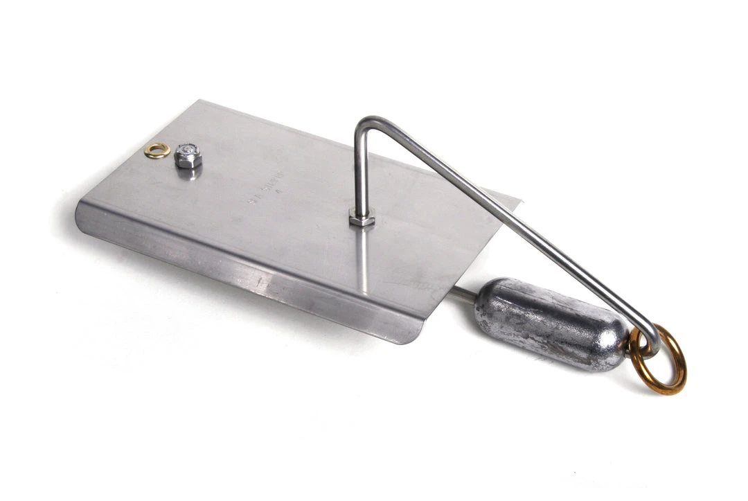 The planer takes your lure down deep without heavy sinkers. While in trolling position, the planer runs at 45º angle. After a fish bites, it pops off the angle and runs straight, allowing you to reel with no added resistance. All sizes feature a rugged stainless steel blade and large brass ring to assure a clean trip. Deluxe planer is approximately 10” long with a brace running across the bottom, tying the planer wire and blade together. This keeps your planer in tune and running straight.