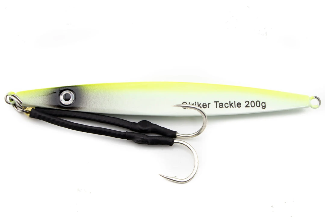 These jigs from striker tackle feature a flat side and a rounded side. These are great for speed jigging for tuna, grouper, amberjack, snappers, trevally, and many other species.
