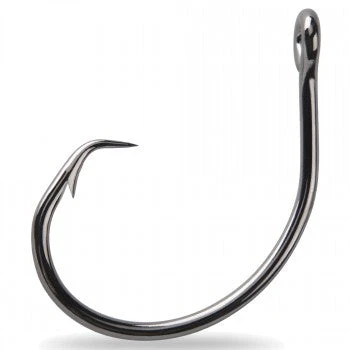 The Mustad Demon® Wide Gap Perfect Circle Hook 39950NP-BN is a true circle hook featuring a wide gap, offering the best hookup ratios. No wonder it is so popular among tournament fishermen. It features 3X extra heavy wire, 2X extra short shank, making it perfect to battle heavier and bigger fish. The distinct curved shape of the circle hook will, when the fish takes the baited hook and swallows it, ensure that the hook travels to the corner of the mouth or lip, resulting in fewer deep-hooked fish. The circle hook can be used for a whole range of applications from drifting with live bait for Tarpon or trolling for Marlin with bridle rigged live bait to deep-dropping for Swordfish. When live baiting always, choose a hook size that matches the bait. Setting the hook is more of a firm tightening of the line, than an actual strike. It is in other words, the ultimate Catch&Release hook. Use it to target Tuna, Marlin, Sailfish, Swordfish, Sharks, Halibut, Wahoo, Amberjack, Permit or Alligator Gar.