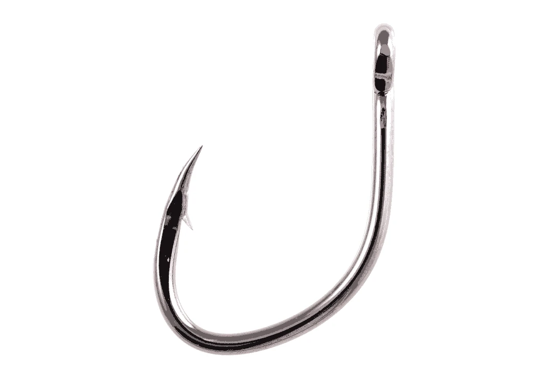 Known for its totally unique “mean” blade-like, curved, sticky-sharp, offset point. Â Sizes 8/0 – 12/0 are available with out rings. Features include, super needle point, forged point, XX-strong wire, and black chrome finish.
