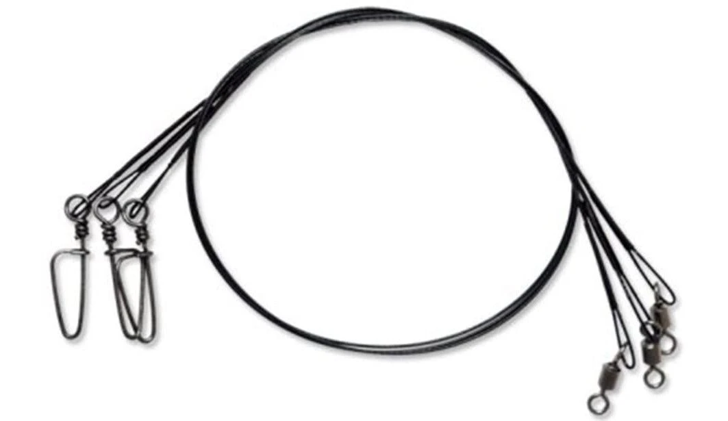 These leaders are great for when the bluefish and other toothy critters are around. These have a barrel swivel and coastlock snap crimped on black surflon.